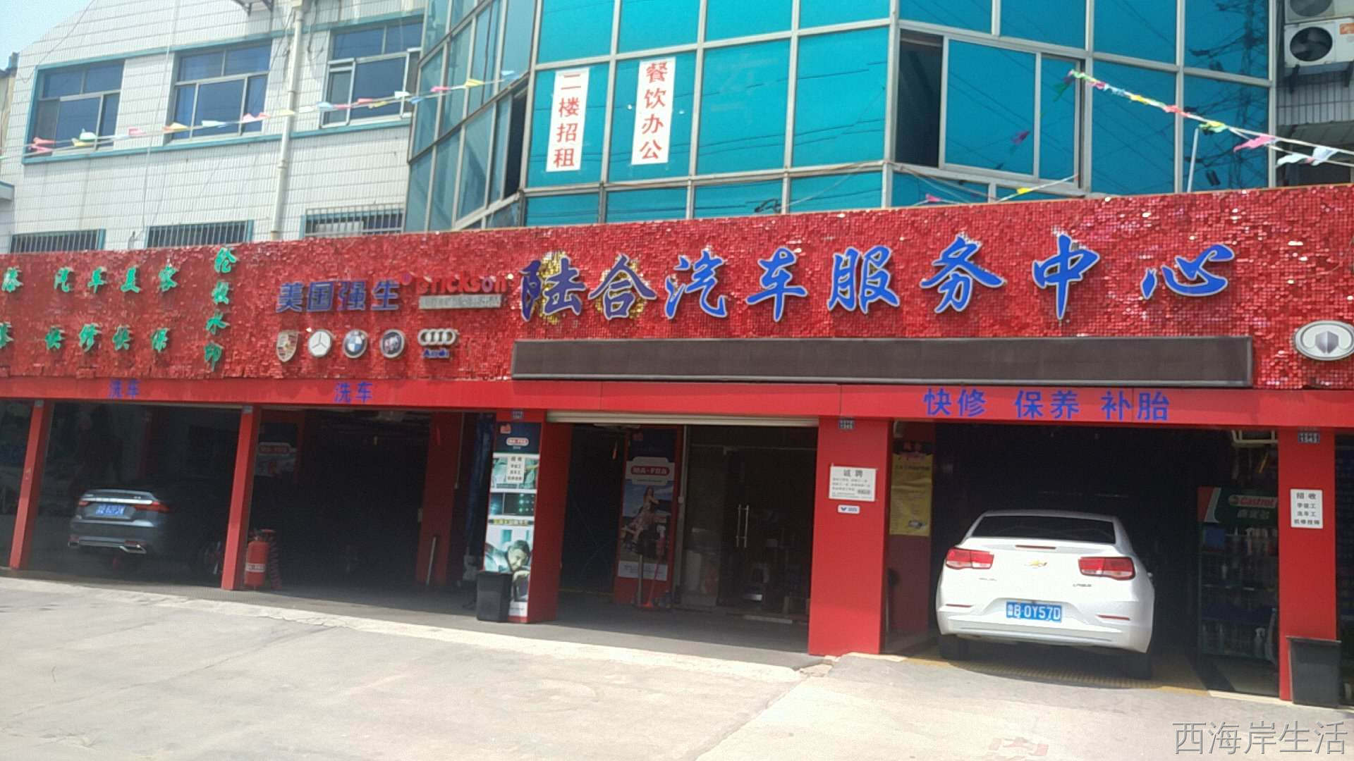 陆合汽车服务中心多个车位水蜡洗车、保养、专业贴膜、钣金烤漆、机修等全套服务满足广大消费者需求,高档享受'低档消费。进店有优惠,进店有惊喜。地址:水灵山路与东岳中路交界口西100米路北。