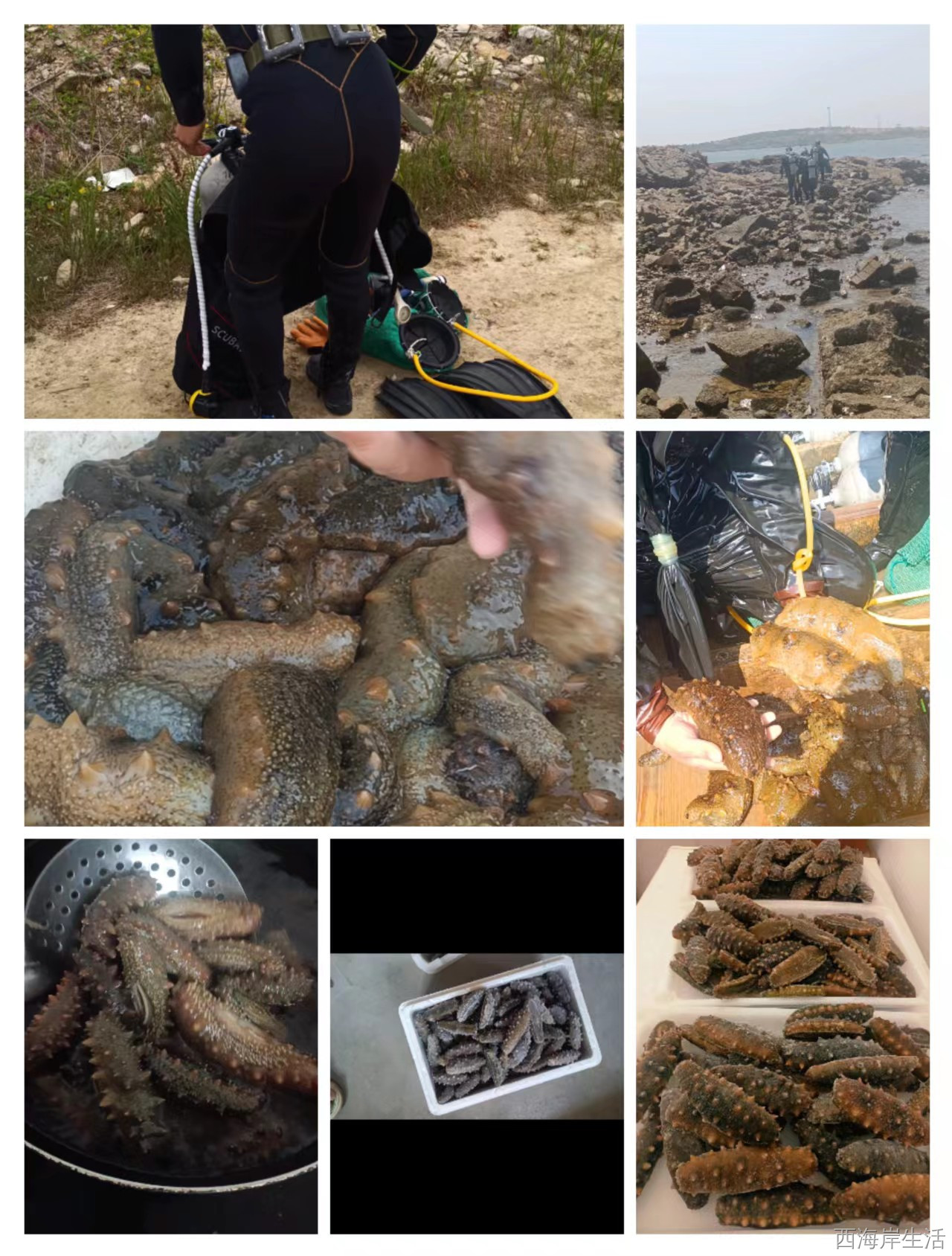 自己潜水摸的野生海参鲍鱼,品质保证,纯野生货,煮好处理干净的野生即食海参,可提供单独抽空包装,可打礼盒,可散包装,纯野生品质,假一赔万,品质放心。需要的随时联系