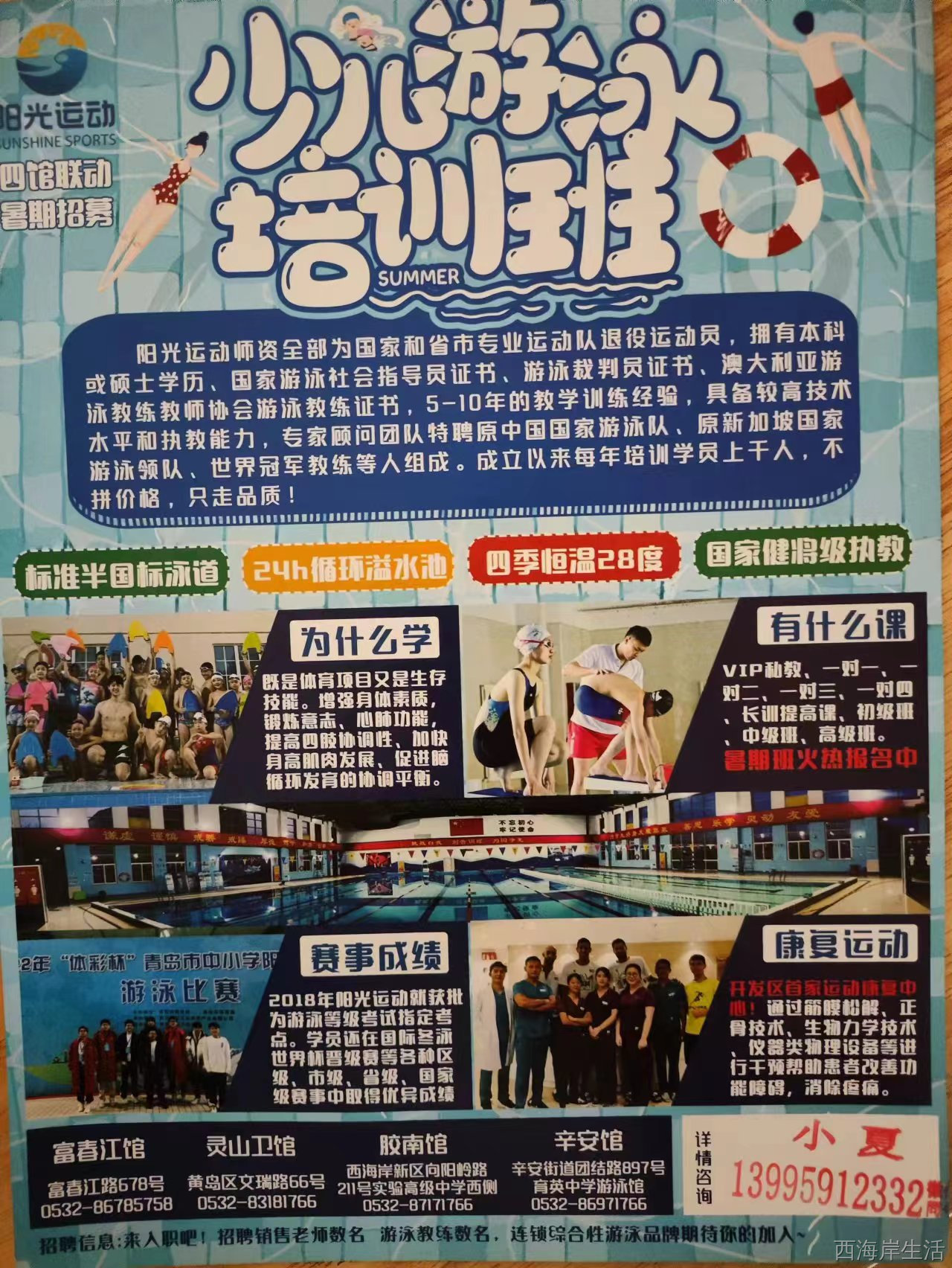 阳光游泳俱乐部胶南馆,暑期游泳精品班火热招生中!