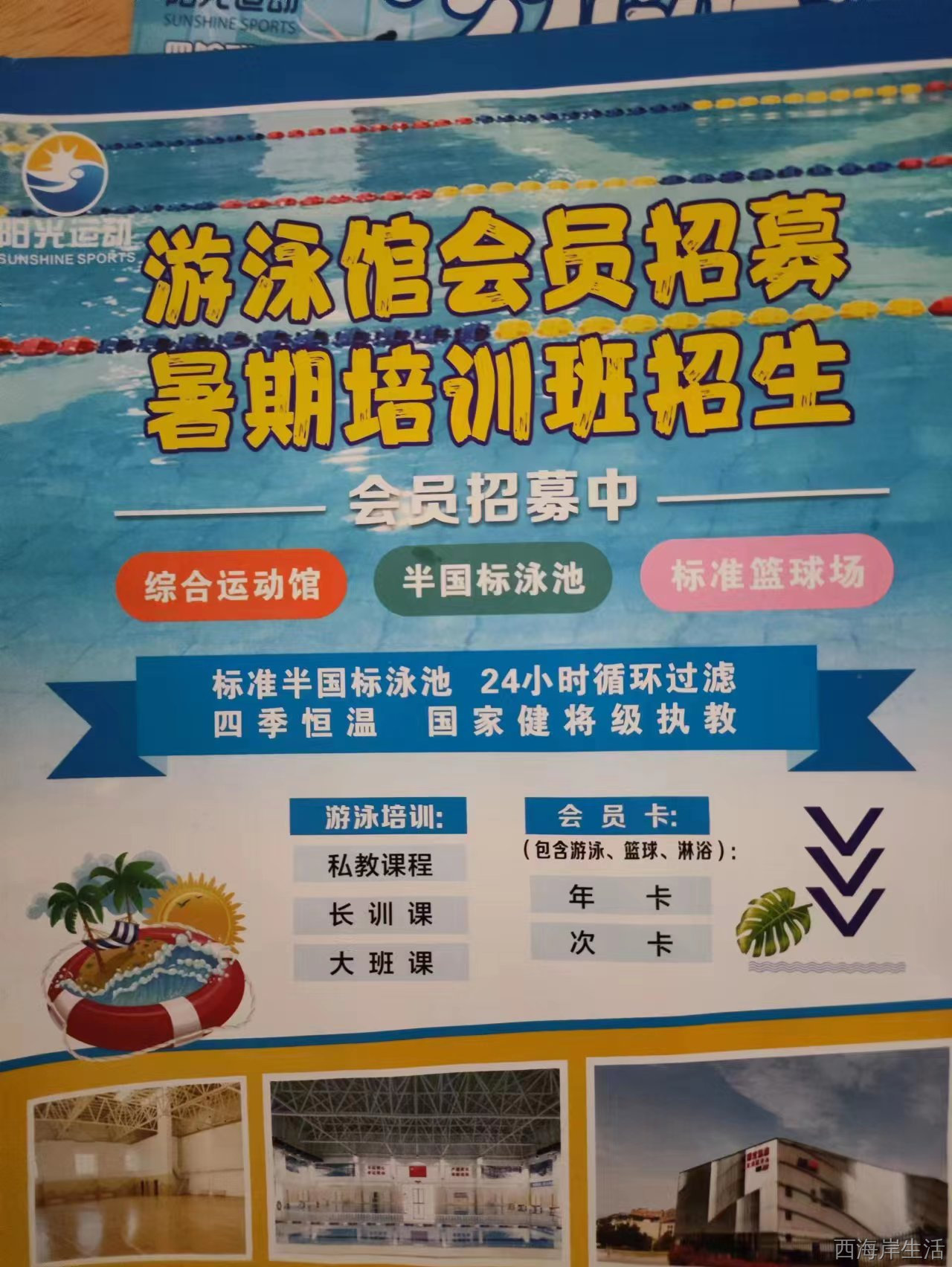 我们家报名了阳光运动游泳篮球馆的课程卡。