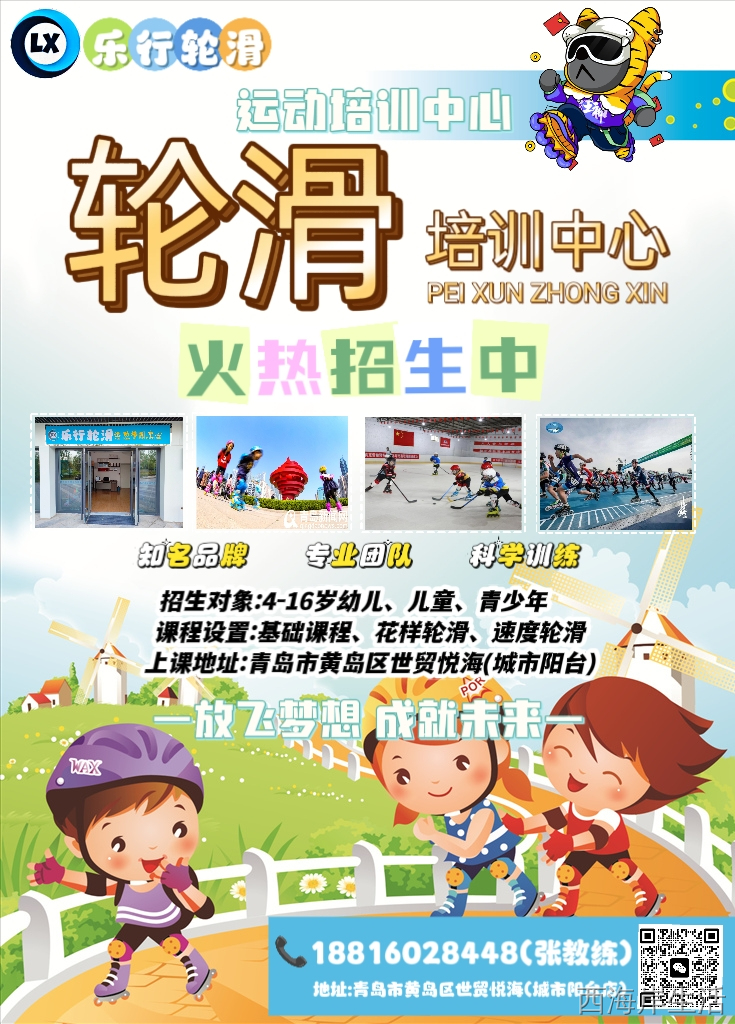 青岛乐行轮滑运动培训中心,是一家专注于幼儿,儿童,青少年体育训练和轮滑培训的专业俱乐部。特色课程有启蒙,轮滑,速度轮滑,花样轮滑,滑板等……轮滑是一项全身有氧运动,可以有效锻炼身体的平衡能力,力量的训练,和骨骼发育以及培养顽强的体育精神。强身健体的同时,还学到了一项潮流运动新技能。为滑雪,短道速滑等高端运动做下铺垫。是一项非常适合儿童,青少年的运动。