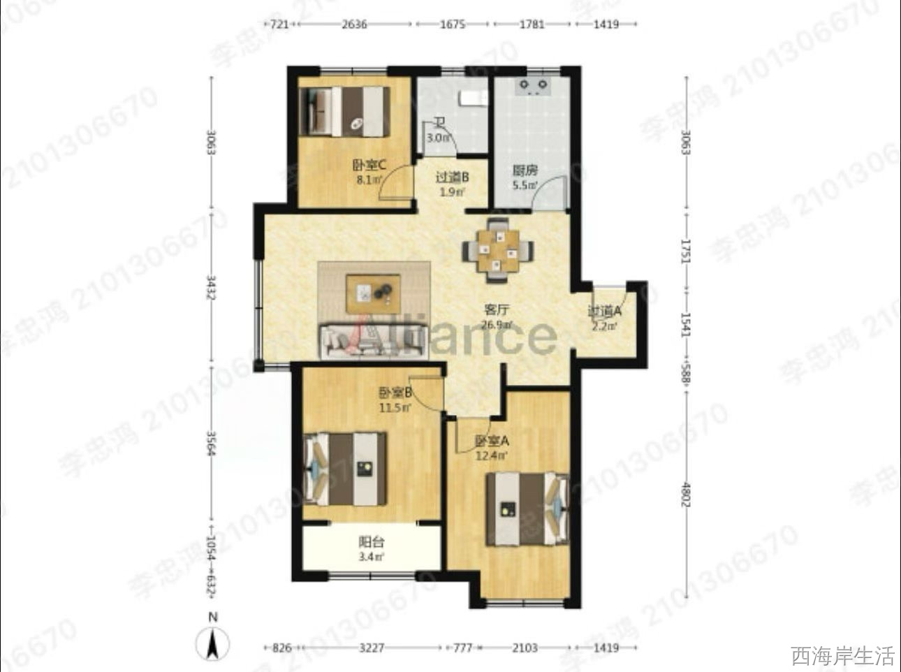 109平套三89万 看山看海 视野开阔