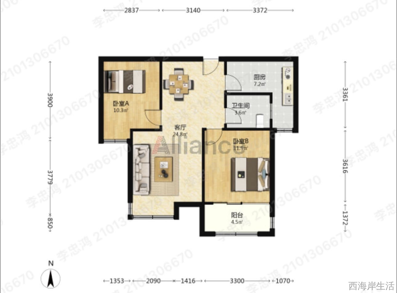 90平精装套二45万 前排无挡[太阳]