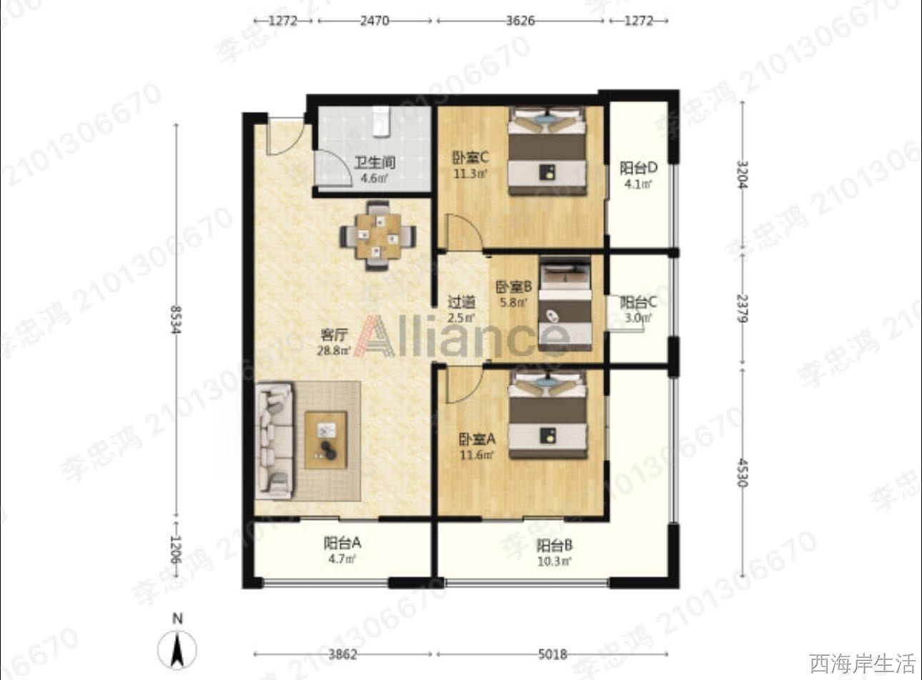 111平三卧四阳台 三小六中地铁口
