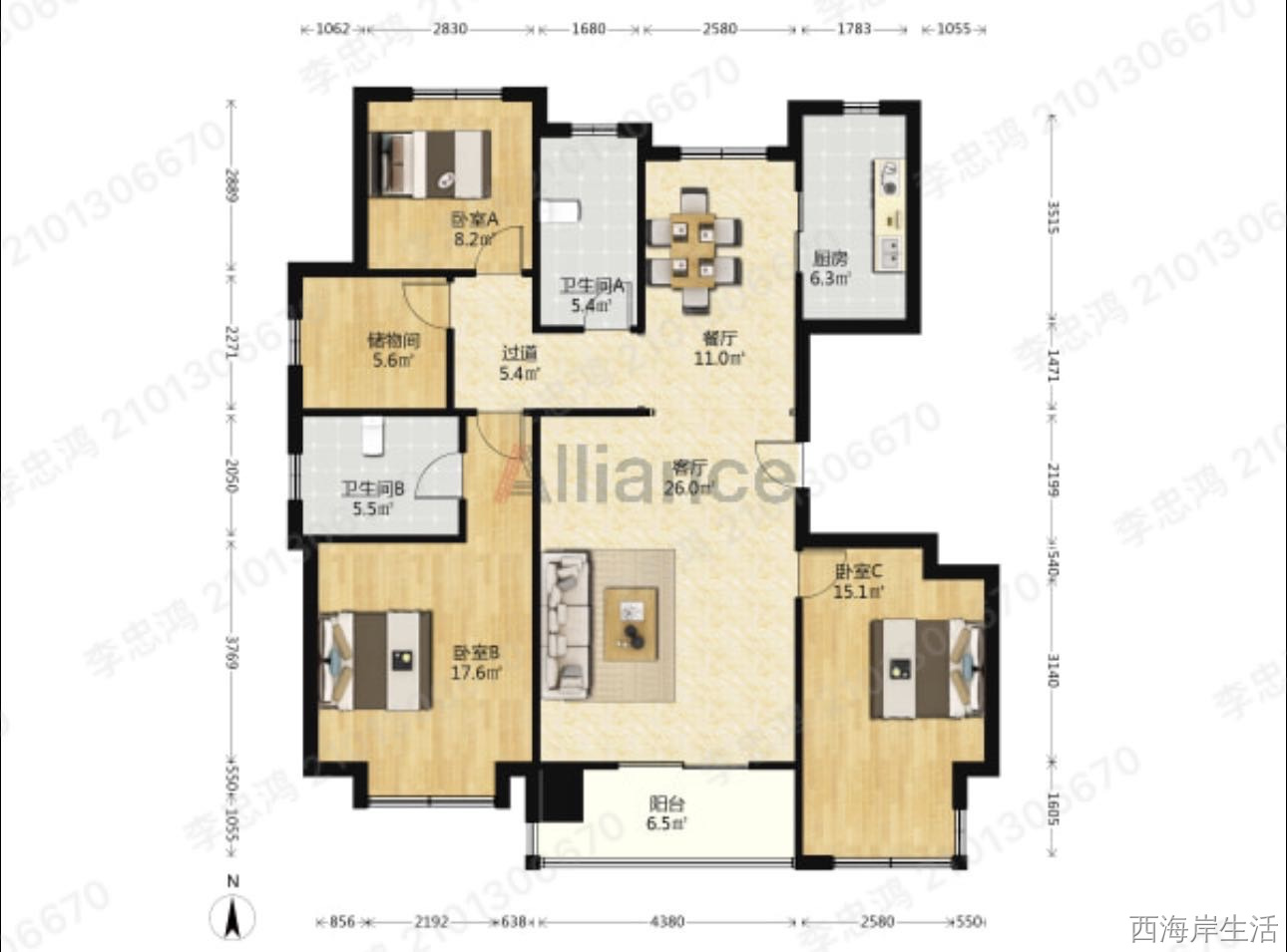 135平四室两厅两卫196万 带车位
