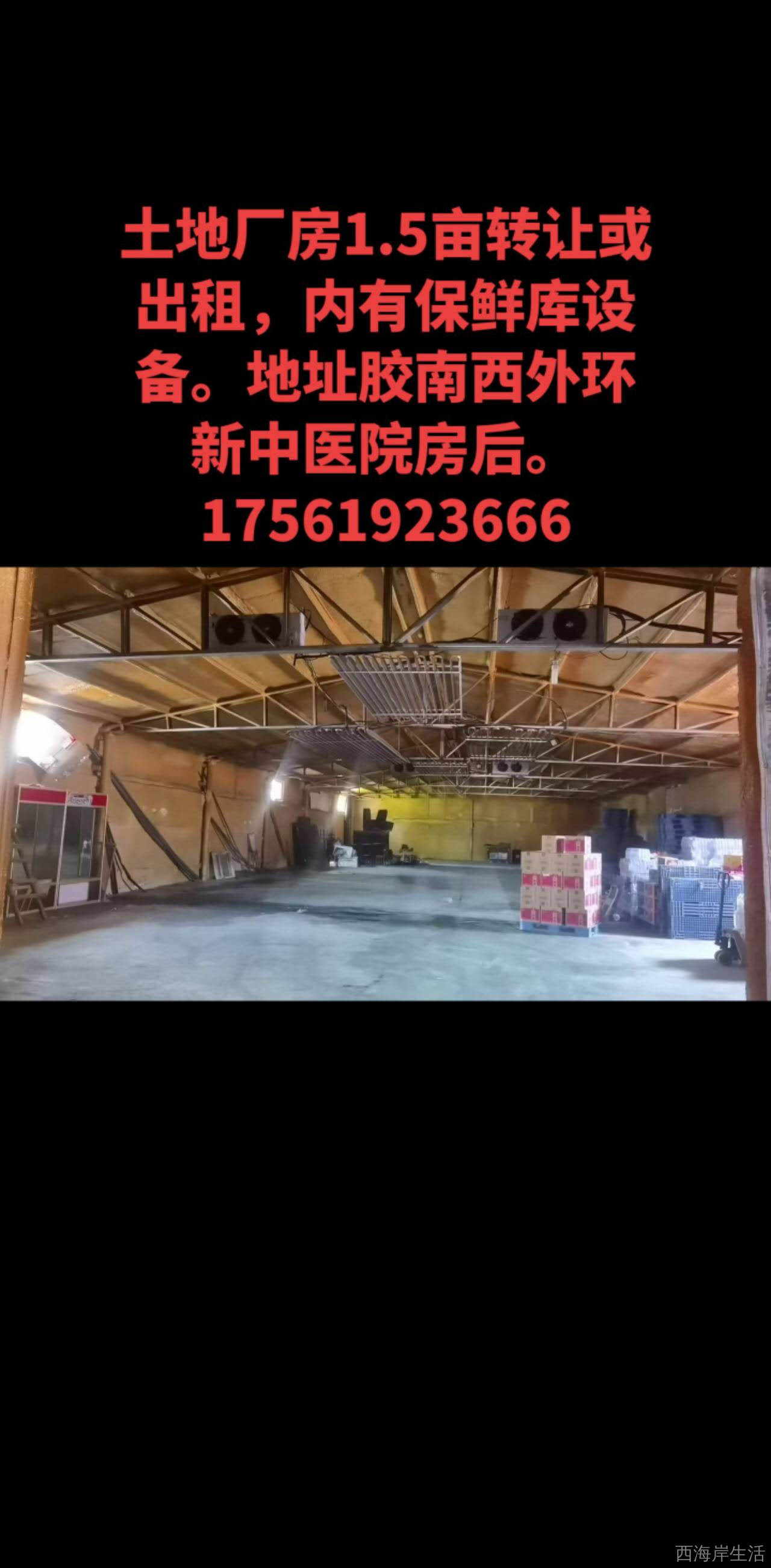 土地转让或厂房出租,地址胶南西外环新中医院楼后,1.5亩土地转让,600平方仓库出租。